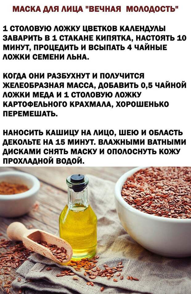 Перемешайте и нанесите на очищенное лицо и шею. Через 25 минут смойте теплой водой.